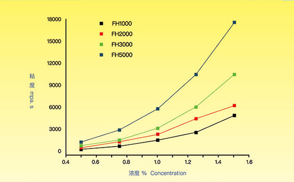 圖表1 不同CMC粘度與濃度關(guān)系圖