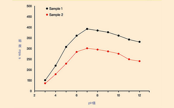 | 圖4:CMC粘度隨pH值的變化曲線 | 圖5:CMC在不同轉(zhuǎn)速下粘度變化情況 |